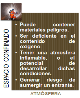 Contiene o tiene el potencial de contener una atmósfera peligrosa, tales como: