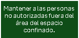 •Salir del espacio cuando las condiciones o el monitoreo se muestran peligrosas.